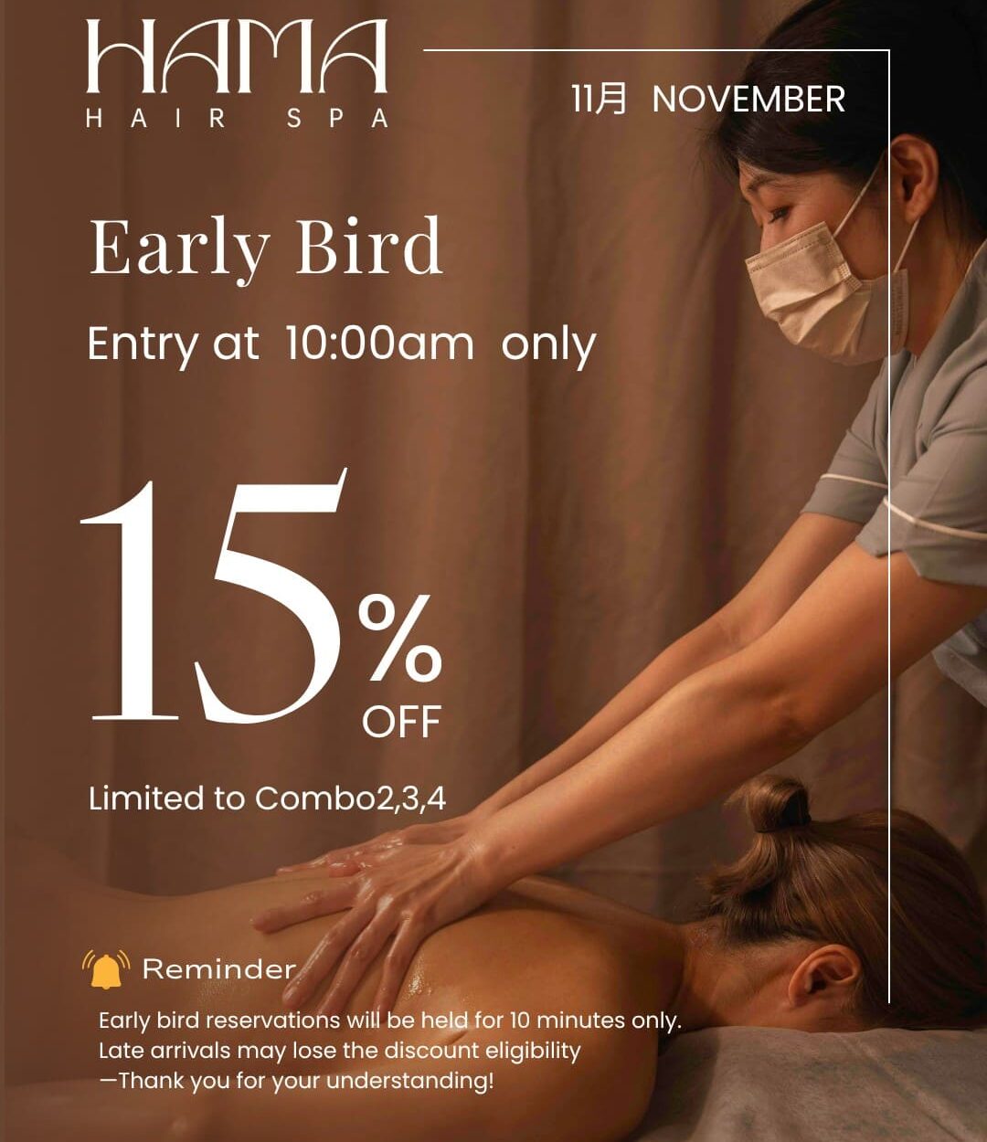 Hama Hair Spa offers professional-grade hot stone spa treatments and meticulous hair washing services, allowing guests to indulge in a variety of experiences. After the session, guests can enjoy Hama's signature floral milk tea. With a convenient location and a comfortable environment, guests can thoroughly relax and feel rejuvenated in mind and body and leave energized with an amazing fragrance from our fine products.